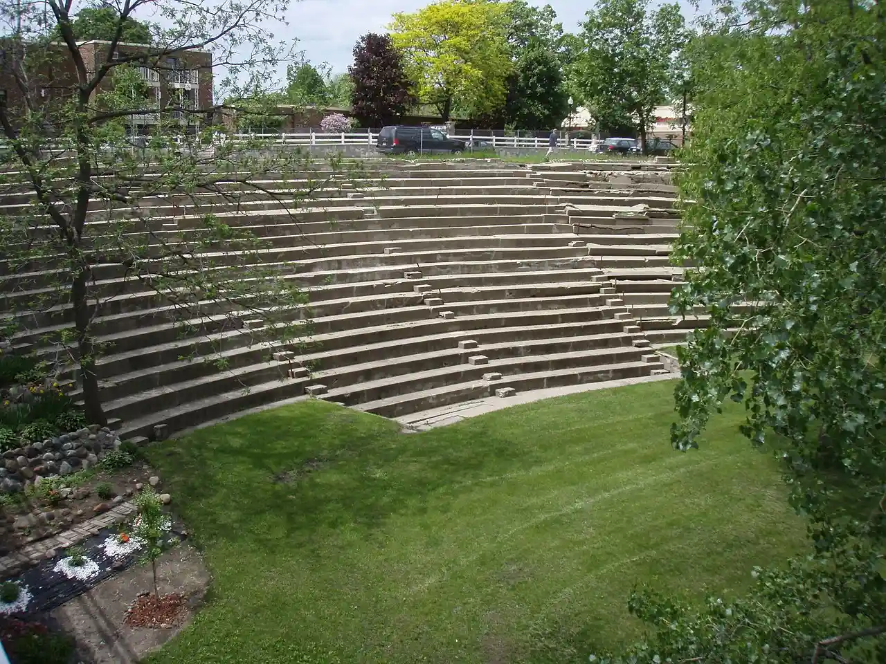 Windego Park Auditorium/Open Air Theater is an amphitheater in Anoka, Minnesota, located on the Rum River. The theater was built in 1914 and was spurred by the City Beautiful movement, as well as Anoka citizens' interest in outdoor entertainment and recreation. Its main organizer, Thaddeus P. Giddings, was a promoter of music education and had been organizing community singalongs in the summer of 1913. The theater is listed on the National Register of Historic Places. Read more on Wikipedia