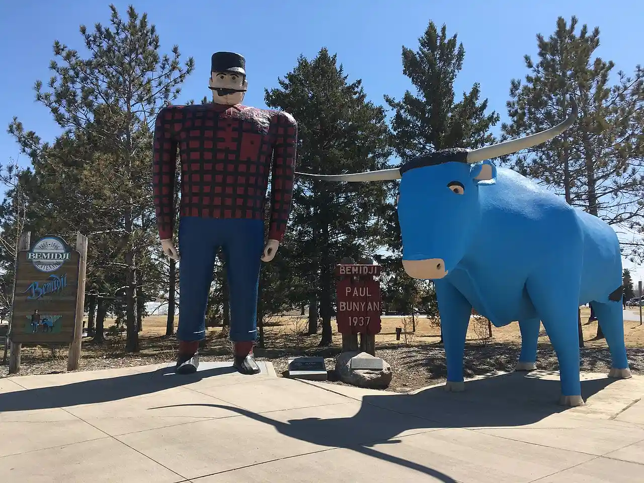 Paul Bunyan and Babe the Blue Ox are the names of a pair of large statues of the American folk hero Paul Bunyan and his ox, located in Bemidji, Minnesota. This roadside attraction has been listed on the National Register of Historic Places since 1988. Read more on Wikipedia