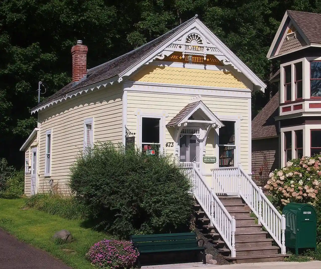 Taylors Falls Public Library is the public library of Taylors Falls, Minnesota, United States, still operating in its original 19th-century building. Originally constructed as a tailor shop in 1854, the building was remodeled and converted into a library in 1887. Taylors Falls Public Library was listed on the National Register of Historic Places in 1970 for its local significance in the themes of architecture and education. It was nominated for being an intact example of small-town libraries as they existed before Carnegie libraries and bookmobiles, and for its Carpenter Gothic/Stick style architecture. Read more on Wikipedia