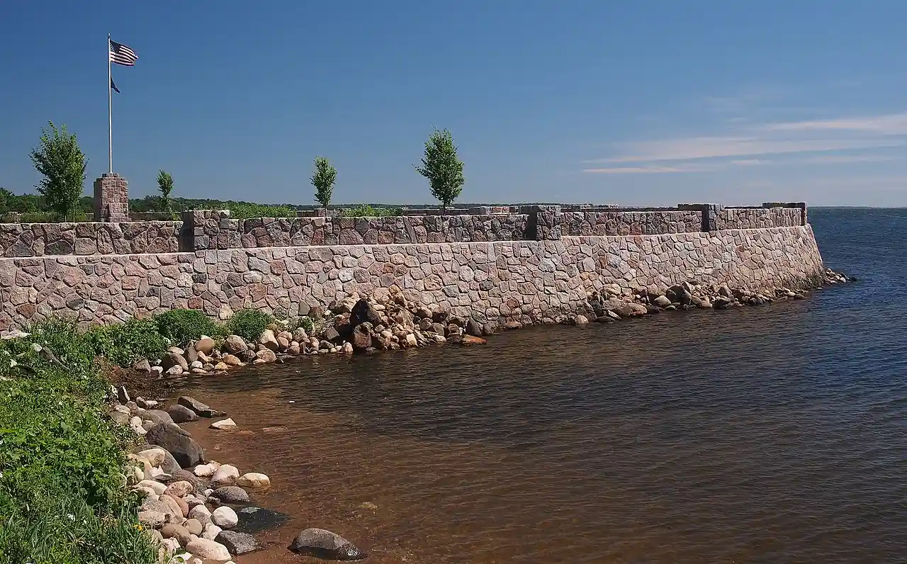 The Garrison Concourse is a roadside park on Mille Lacs Lake in Garrison, Minnesota, United States. The site consists of a wide parking area and scenic overlook projecting out into the lake, plus landscaped parkland along the shore in both directions. It was built from 1936 to 1939 as the centerpiece of the Mille Lacs Highway Development Plan, a major New Deal project to create a scenic parkway along the lakeshore. The park was listed on the National Register of Historic Places in 2013 for having state-level significance in the themes of landscape architecture and politics/government. It was nominated for being the premiere structure of the most extensive roadside development project undertaken by the Minnesota Highway Department and the Civilian Conservation Corps, and for its blend of formalism and National Park Service rustic design. Read more on Wikipedia