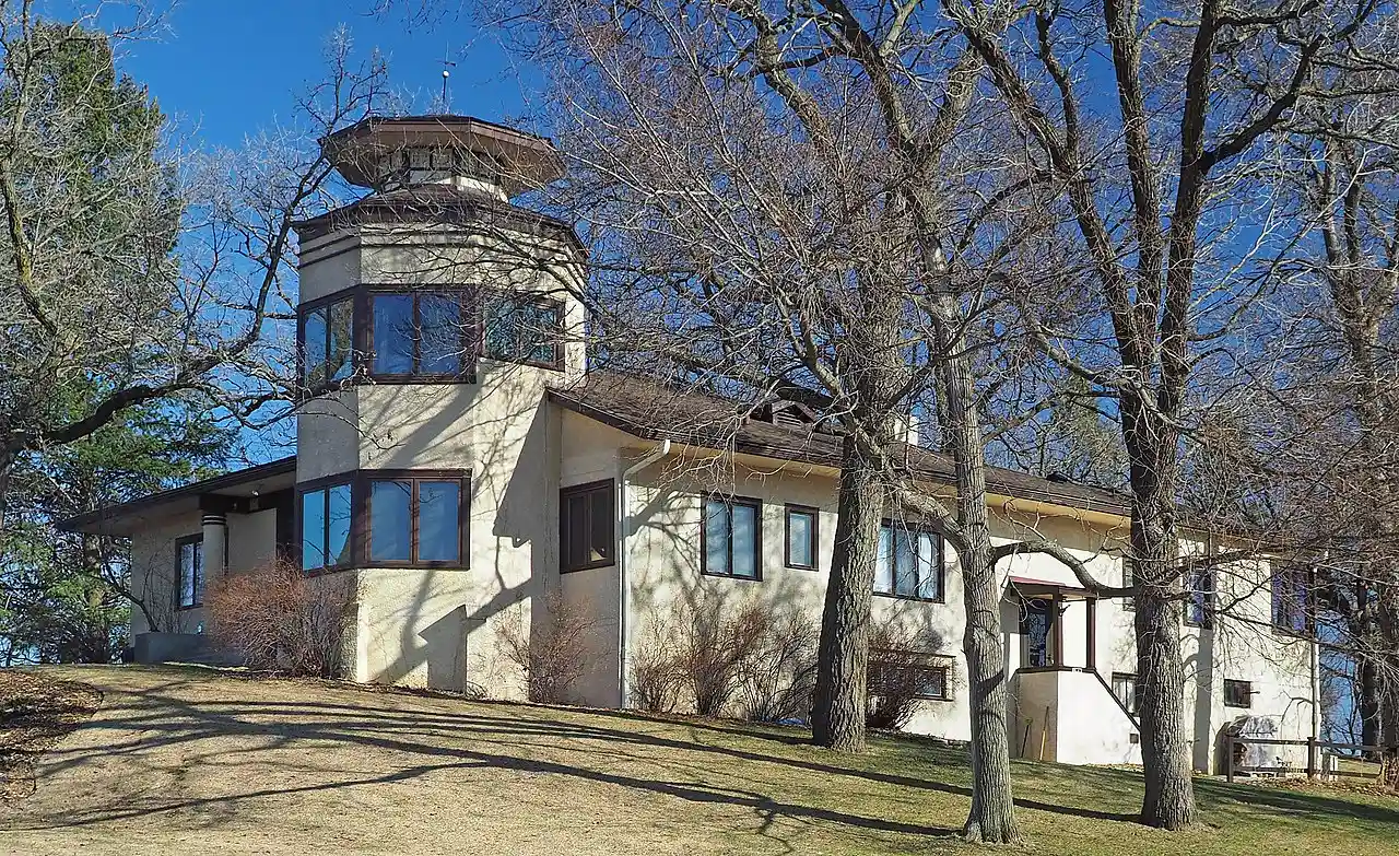 The Emil J. Oberhoffer House is a historic house in Lakeville, Minnesota, United States, overlooking Orchard Lake. Emil Oberhoffer was the founder and first conductor of the Minneapolis Symphony Orchestra. The home was designed by Paul Haugen, who worked for Purcell and Elmslie, an architectural firm known for its renditions of Prairie School architecture. Later the home belonged to the parents of golfer Patty Berg. Read more on Wikipedia