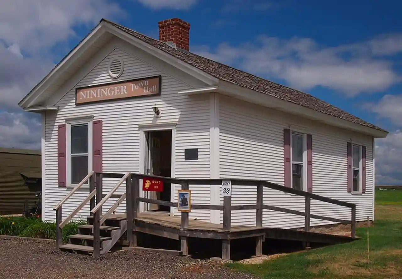 The Good Templars Hall is a Greek Revival style public building that was built in 1858 in Nininger in the U.S. state of Minnesota. The Nininger Chapter of the Independent Order of Good Templars, a temperance group, built the two-story hall to have a place for socializing without alcohol. When the railroad bypassed Nininger in 1859, the town began to fail, and the building was sold to the school district. In the late 1870s the first floor was removed due to decay, and the upper floor and roof were lowered to the ground level. The building was renovated by an historical group and used as a community center until it was moved to the Little Log House Pioneer Village in 2005. A plaque has been erected near its original location. Read more on Wikipedia