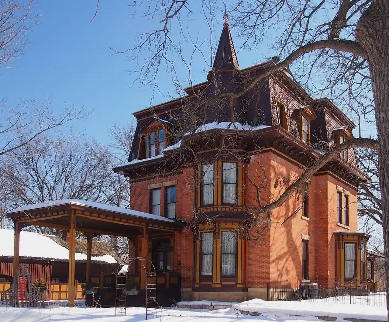 The Thompson–Fasbender House, located at 649 West 4th Street in Hastings, Minnesota is listed on the National Register of Historic Places. It was built in 1880 by William Thompson who came to Minnesota in 1857 from Maine. He was a banker, wheat-buyer, and land-owner who also was part-owner of a saw mill and door and sash factory. His access to woodworkers is reflected in the home's finishing. Its Second Empire architecture is reflected in its mansard roof featuring scalloped wooden shingles and bracketed cornices. Read more on Wikipedia