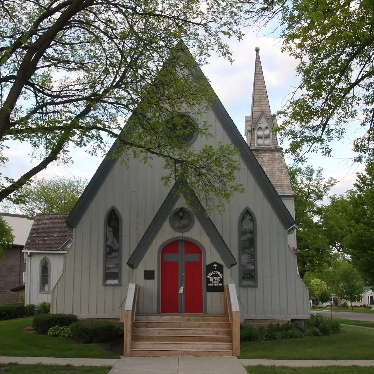 Church of the Good Shepherd Episcopal, a notable example of Rural Gothic architecture located at Moore and 8th Streets in Blue Earth, Minnesota, is the oldest surviving church building in the community. As the congregation diminished in the 1970s regular worship services were eventually suspended; in 1981 its three remaining members donated the building to the Faribault County Historical Society.Historic plaque posted on site Since then the church has hosted seasonal ecumenical services, Christmas concerts, weddings, and funerals. It was added to the National Register in 1980. Read more on Wikipedia
