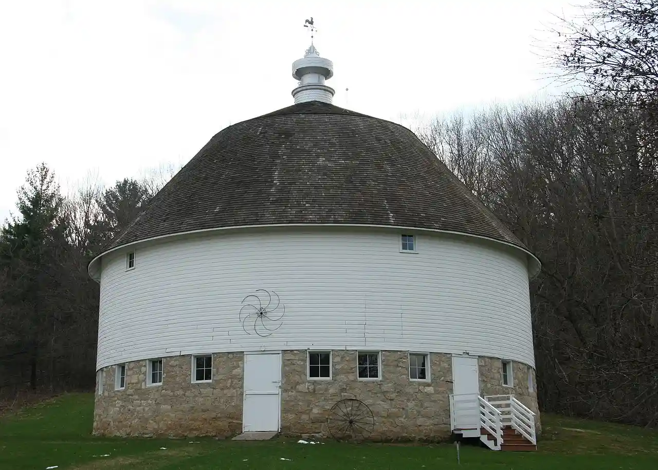 Dammon Round Barn is a round barn just southeast of Red Wing, Minnesota, United States, adjacent to U.S. Route 61. The barn is listed on the National Register of Historic Places. It was built in 1914, with a foundation of Mississippi River limestone, and is in diameter and high. It was built during a time of agricultural growth in Goodhue County, when dairy cow herds were averaging 25 cows per farm and farmers were starting to build specialized barns. The round barn design was built around a silo and provided insulation for the silage, as well as making feeding and cleaning easier. Despite their efficiency round barns were difficult to construct, and they were not widely adopted. Later in its history the barn was used for honey production of the beekeeping owners of the farm. In 2000 the farm was purchased by Robin and Elaine Kleffman and the Dammon Barn underwent some significant restoration. A straightening of the walls and replacement of the original pillars for the upper floor support and a leveling and new installation of a floor in the top level of the barn makes this one of the most premiere remaining round barns in Minnesota. Read more on Wikipedia