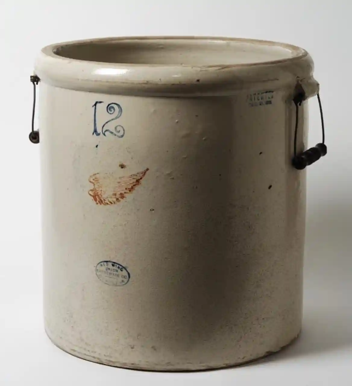 Red Wing pottery refers to American stoneware, pottery, or dinnerware items made by a company initially set up in Red Wing, Minnesota, in 1861 by German immigrant John Paul, which changed its names several times until finally settling on Red Wing Potteries, Inc. in 1936. The pottery factory that started in 1861 continues to the present day under the names of Red Wing Pottery and Red Wing Stoneware.DePasquale, Dan, Gail Peck, and Larry Peterson. (1983). "Red Wing Stoneware" 160 pgs Collector Books: Paducah, Kentucky There was a respite in production when Red Wing Pottery Sales, Inc. had a strike in 1967 causing them to temporarily cease trading.Gillmer, Richard S. (1968). "Death of a Business: the Red Wing Potteries" 280 pgs Ross & Haines: Minneapolis The company still makes both zinc/Bristol glazed products as well as salt-glazed, hand-thrown, kiln fired items.May 2013 Martha Stewart magazine page 120Red Wing Stoneware Company website Read more on Wikipedia
