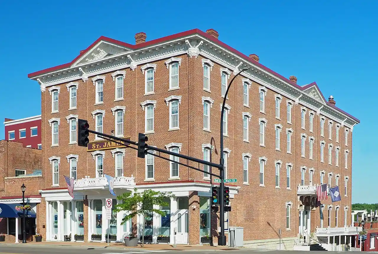 St. James Hotel in Red Wing, Minnesota, United States, is an Italianate building built in 1874-1875. It was listed on the National Register of Historic Places in 1977. The NRHP-listed area was increased to become St. James Hotel and Buildings in 1982. St. James Hotel is a member of Historic Hotels of America, the official program of the National Trust for Historic Preservation. Read more on Wikipedia