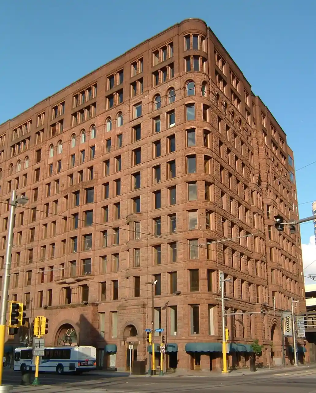 The Lumber Exchange Building was the first skyscraper built in Minneapolis, Minnesota, United States, dating to 1885. It was designed in the Richardsonian Romanesque style by Franklin B. Long and Frederick Kees and was billed as one of the first fireproof buildings in the country. It is the oldest high-rise building standing in Minneapolis, and is the oldest building outside of New York City with 12 or more floors. Read more on Wikipedia