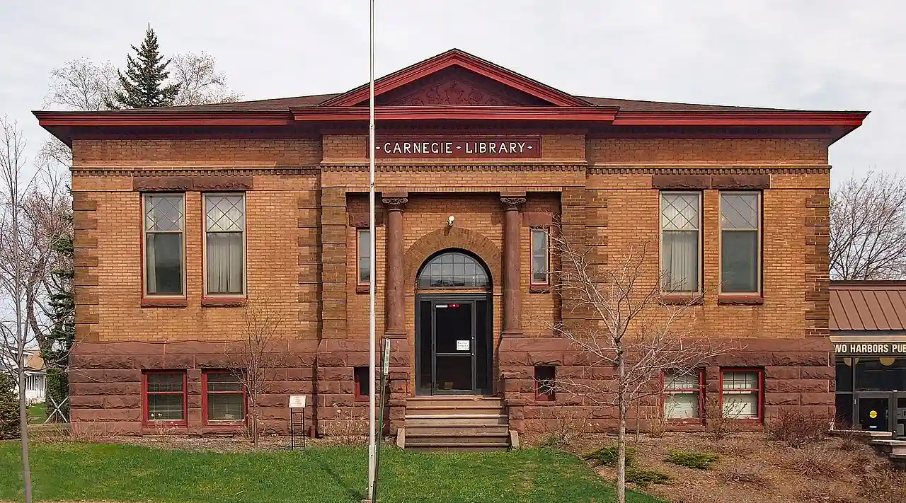 The Two Harbors Carnegie Library, located at 320 Waterfront Avenue, Two Harbors, Minnesota, United States, is a public library building built in 1909 with a $15,000 grant from Andrew Carnegie. This was one of over 3,000 libraries in 47 states funded by Carnegie. It was built in the Classical Revival style with brick and sandstone. Read more on Wikipedia