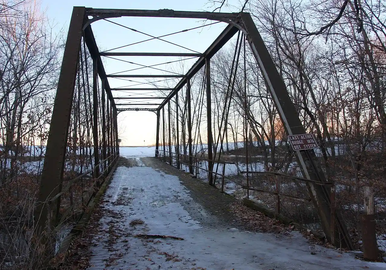 The Shanaska Creek Bridge, also called Washington Park Bridge and officially Bridge 4846, is an iron 8 panel pin-connected Pratt through truss bridge which was erected in 1875 over the Blue Earth River in the U.S. State of Minnesota and moved twice since. It was built near Vernon Center, Minnesota by Soulerin, James, and Company of Milwaukee, Wisconsin. Read more on Wikipedia