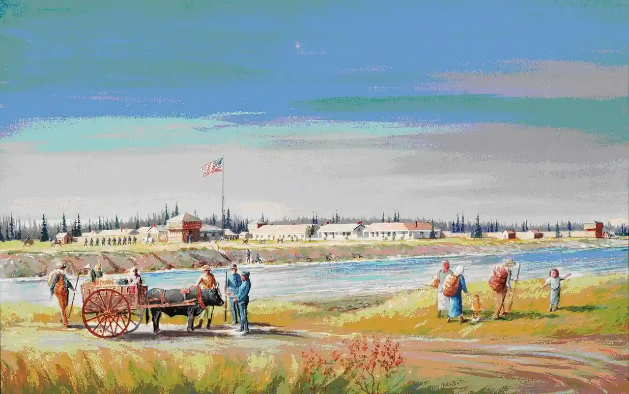 Fort Ripley was a United States Army outpost on the upper Mississippi River, in mid-central Minnesota from 1848 to 1877. It was situated a few miles from the Indian agencies for the Ho-Chunk and Ojibwe in Iowa Territory and then the Minnesota Territory. Its presence spurred immigration into the area and the pioneer settlement of Crow Wing developed approximately 6.75 miles (10.86 km) north of the fort. The post was initially named Fort Marcy. It then was renamed Fort Gaines and in 1850 was renamed again for distinguished Brigadier General Eleazer Wheelock Ripley of the War of 1812. It was the second major military reservation established in what would become Minnesota. Read more on Wikipedia