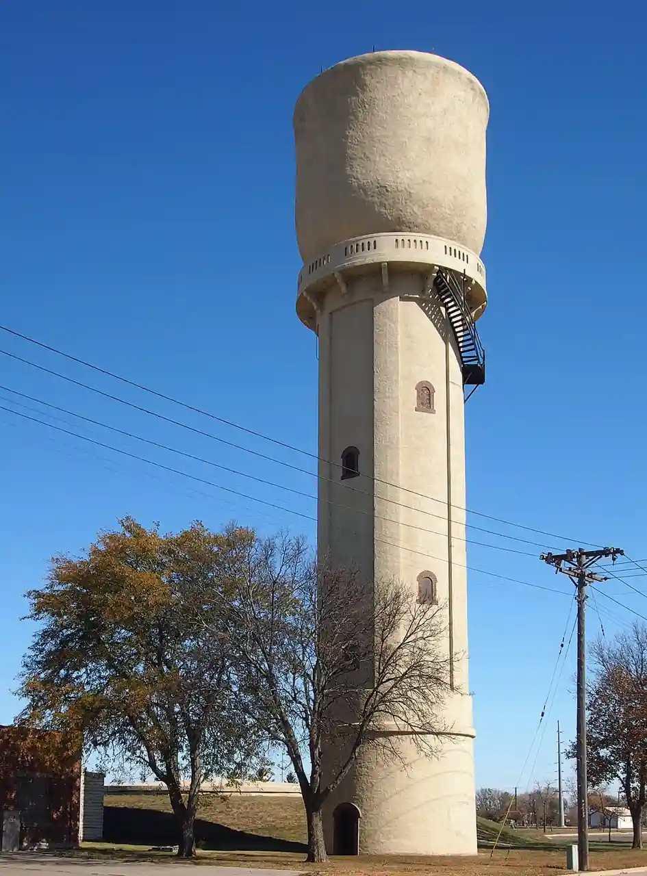 The Pipestone Water Tower is a concrete water tower in Pipestone, Minnesota, United States, which is listed on the National Register of Historic Places. Unreliable rainfall and a lack of glacial lakes in the area necessitate the use of a tower to pump and store water from an underground reservoir. Read more on Wikipedia