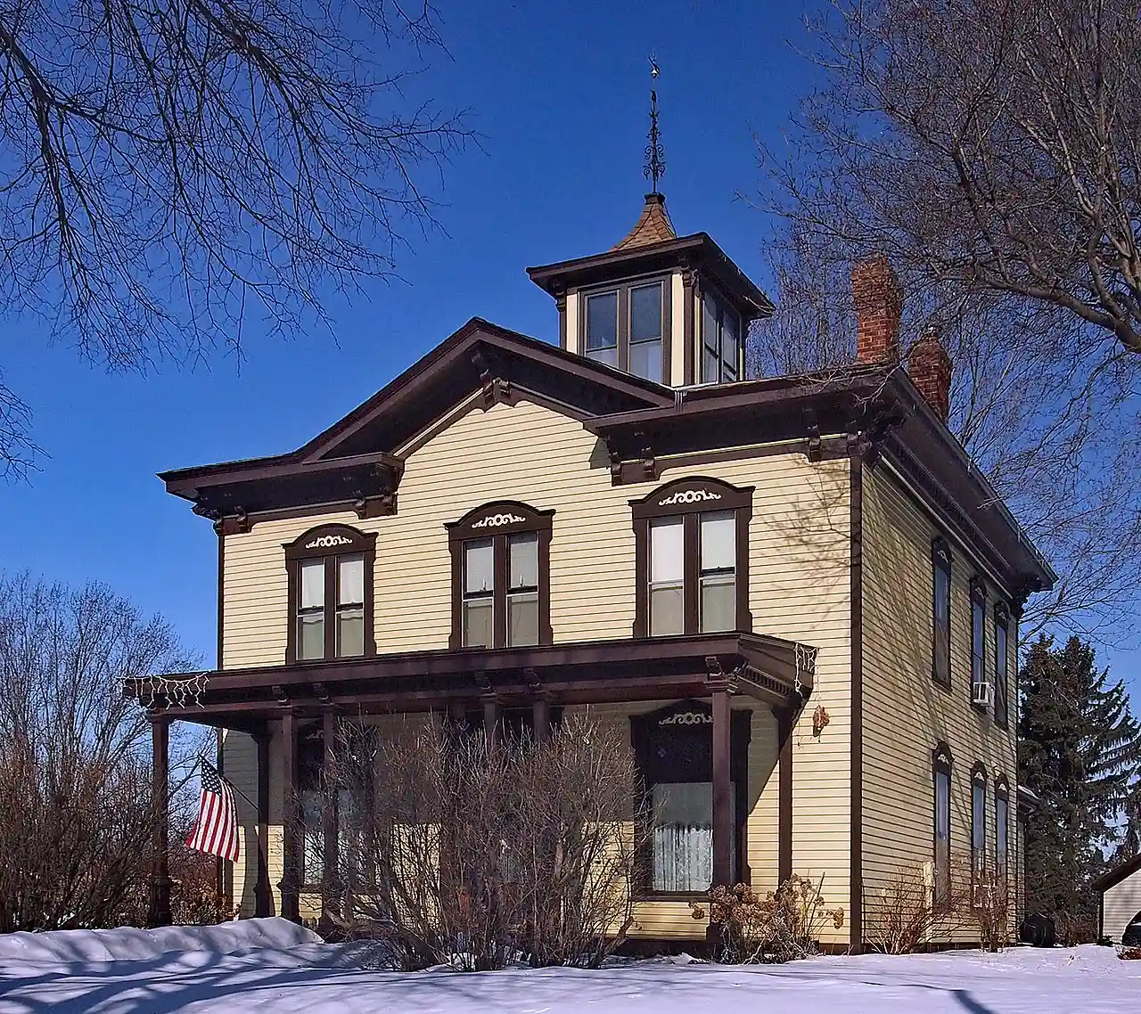 The Ann Charlotte and Jacob Hinkel House is a house listed on the National Register of Historic Places in Saint Paul, Minnesota, United States. It was built by ice-dealer Jacob Hinkel in 1873 two miles north of downtown, in a rural area in what was New Canada township; the rural route was named after Horace J. Brainerd (1825-1902) an influential property-owner and politician. Read more on Wikipedia