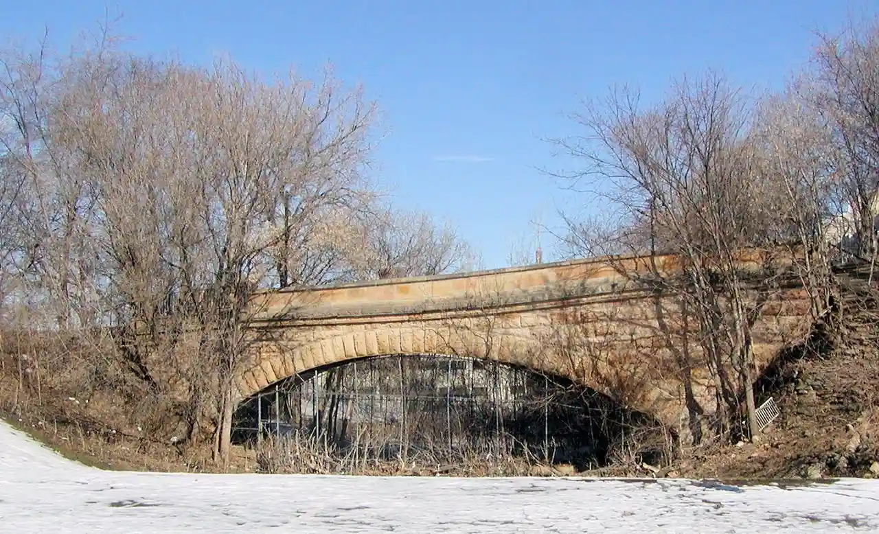 The Colorado Street Bridge also known as Bridge L-8803 is a masonry and brick arch bridge in Saint Paul, Minnesota's West Side neighborhood. It is wide and consists of a single oblique span of that was built with the arch courses running parallel to the abutments, leading to a weaker structure than other skew arch construction methods, known as a false skew arch. It was designed in 1888 by Andreas W. Munster of the Saint Paul Engineer's Office and is now restricted to pedestrian traffic. Read more on Wikipedia
