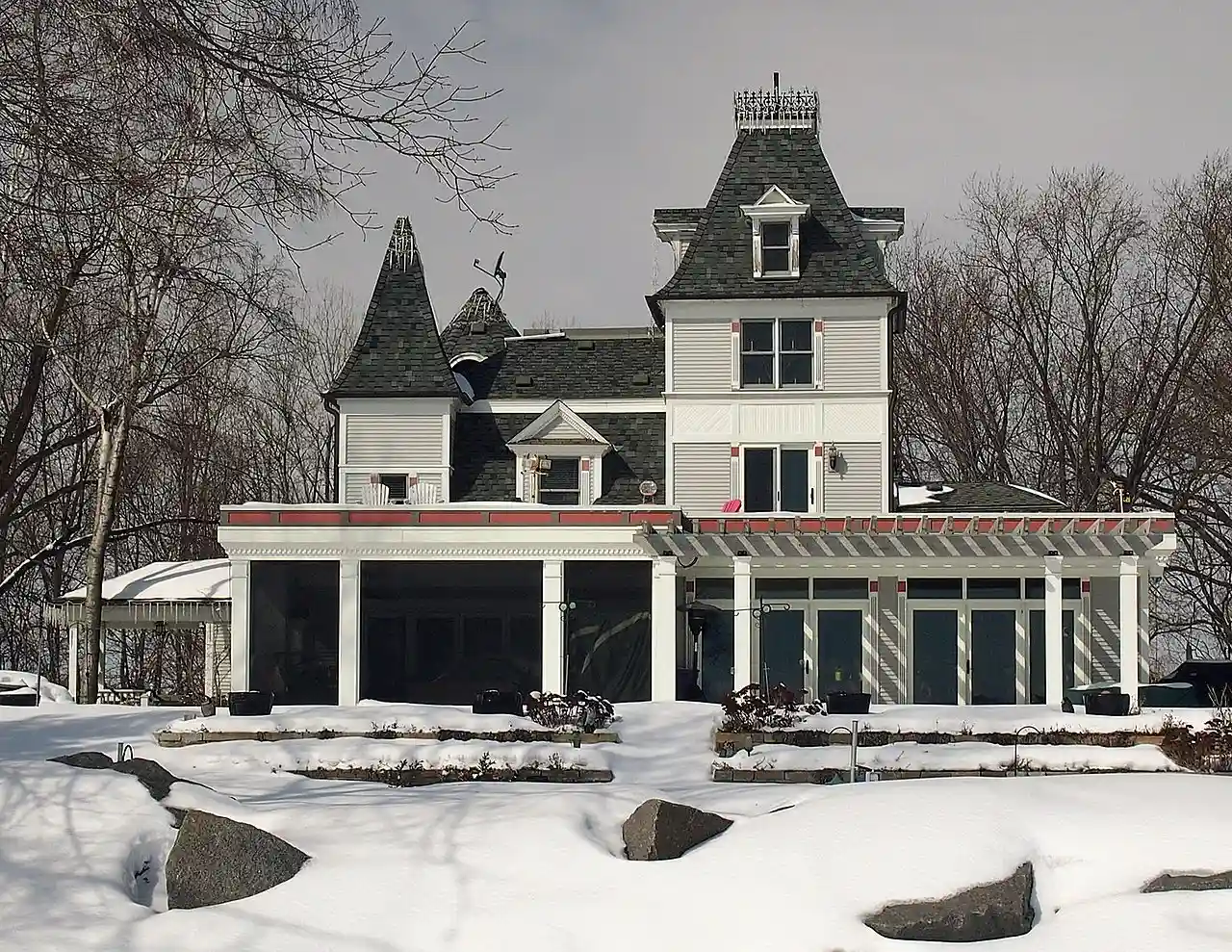The E. H. Hobe House or Solheim (Norwegian for "Home of the Sun") was built in 1897 by Engelbrecht H. Hobe, a Norwegian immigrant, who worked for the newspaper Nordvesten, was a lumber dealer, steam-ship agent, and who became Vice-Consul, then Consul to the Norwegian-Swedish Kingdoms. The Victorian home was visited by Swedish King Gustav V and Crown Prince Olav and Princess Märtha of Norway. In 1918, Hobe purchased the Phillip J. Reilly house in St. Paul (565 Dayton Avenue), and thereafter used Solheim primarily as a summer home. The estate on Bald Eagle Lake was designed by Minneapolis architect Carl F. Struck. Read more on Wikipedia