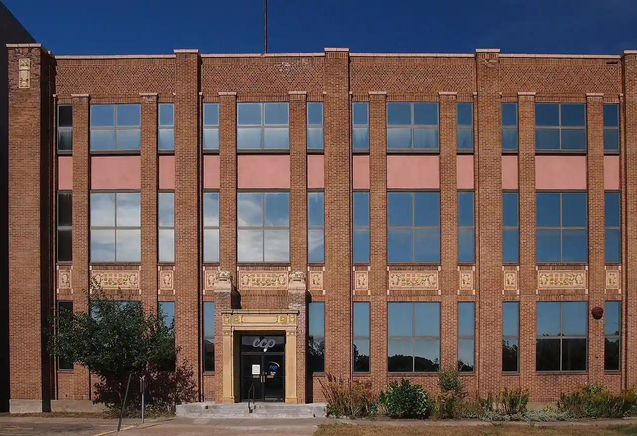 The Krank Manufacturing Company building in Saint Paul, Minnesota, United States, is a 1926 industrial building featuring glazed terracotta panels with brightly carved floral and classical motifs. It is listed on the National Register of Historic Places. The company made cosmetics, creams and shampoos. Read more on Wikipedia