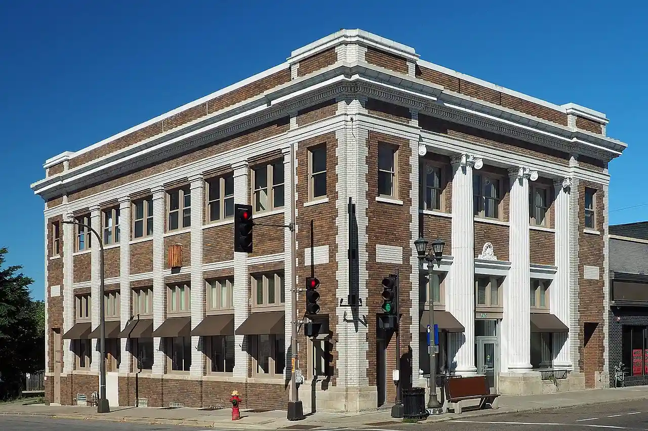 The Payne Avenue State Bank was designed in the Beaux-Arts style by W. L. Alban in 1923. Located in a predominantly new immigrant area of Saint Paul, Minnesota, United States, the bank initially served Irish, Swedish, German, and Italian immigrants in Saint Paul's East Side neighborhood. The formidable brick building conveyed a sense of permanence to the area residents. Read more on Wikipedia