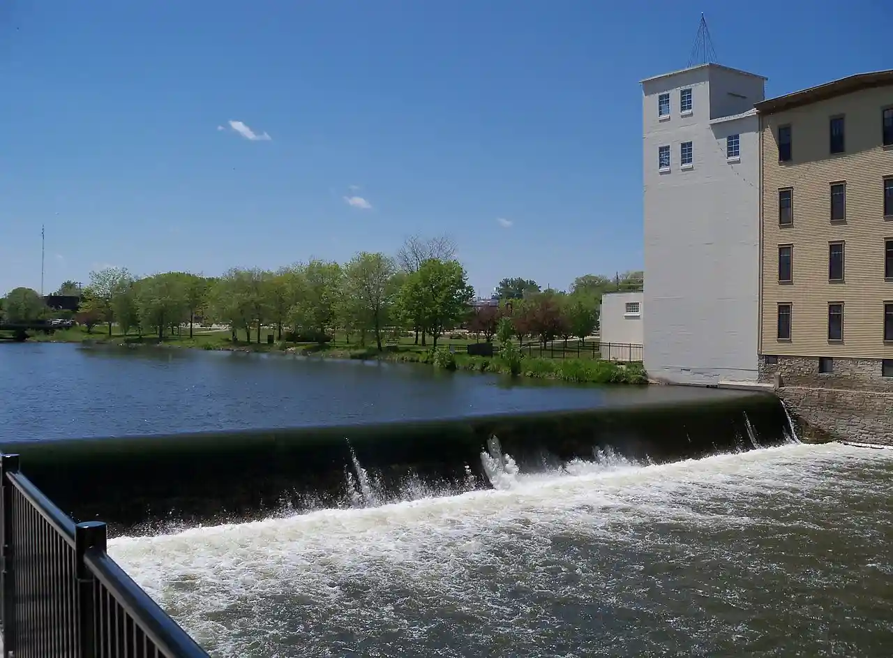 Ames Mill Dam is a 6-foot (2 m) low-head dam located near South Water Street in Northfield city, in southeastern Minnesota, in the United States. It lies on the Cannon River, a tributary of the Mississippi River 35 miles (55 km) south of St. Paul. Ames Mill was originally built as a wooden dam in 1855 and then rebuilt as one of the six concrete dams on the Cannon River in 1919. The Cannon River was central to industrial development in the late 19th century through hydroelectric power production. The presence of dams along the river has influenced geomorphologic changes which affect fish, mussel populations and sediment. The Ames Mill Dam was used to power the Ames Flour Mill; however, it is no longer used for hydroelectric power because the dam is old and nearing the end of its lifespan. Currently the dam serves no functional purpose. The Cannon River is an essential part of Northfield's economic community and the Ames Mill Dam is a part of Northfield's historic identity. The dam is currently owned by Malt-O-Meal, a breakfast cereal company founded in 1919 and headquartered in Northfield, Minnesota. Read more on Wikipedia