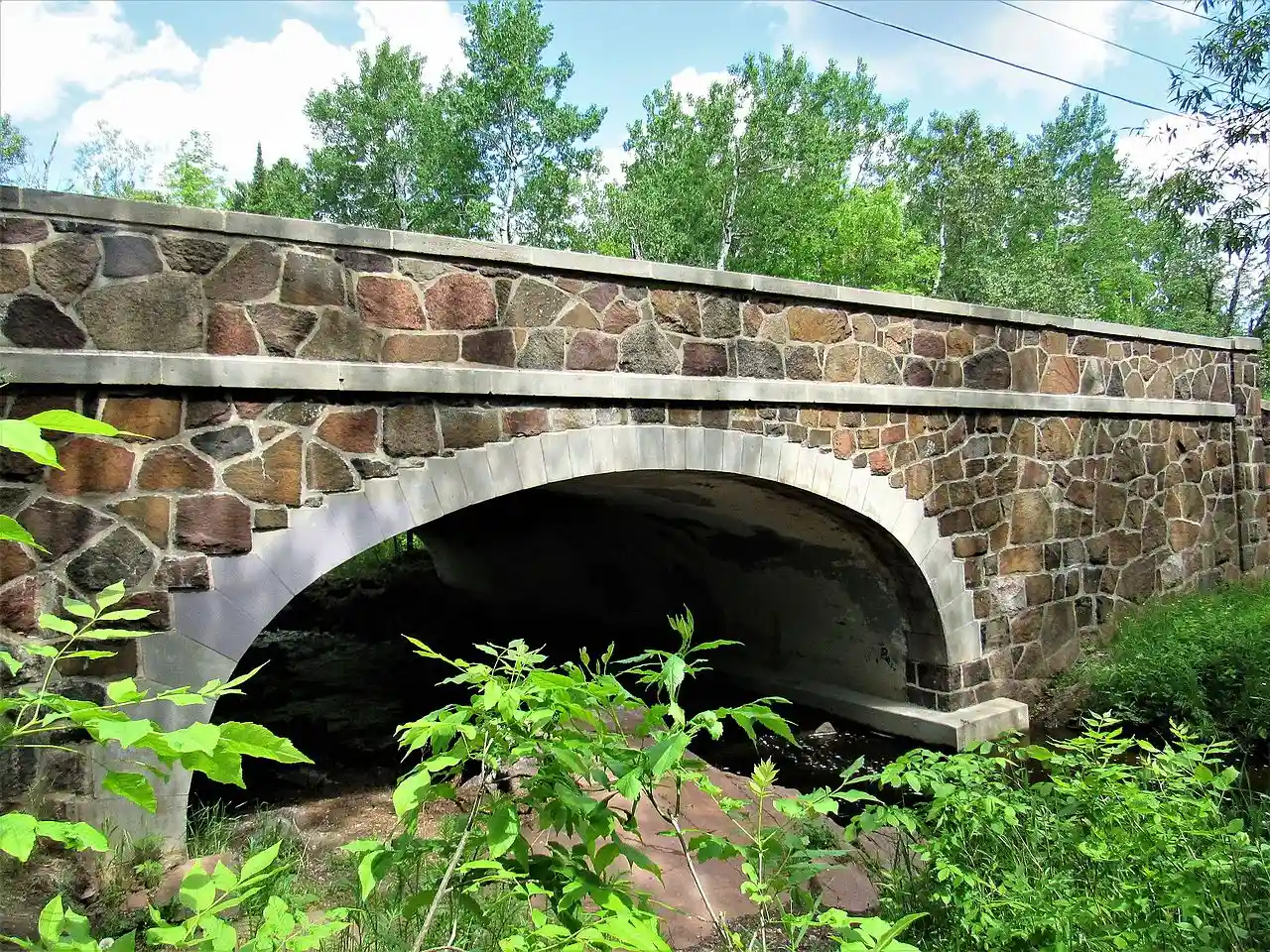 Bridge L6113 is a historic bridge in Congdon Park in Duluth, Minnesota, United States. Built in 1925, it carries East 4th Street over Tischer Creek. Structurally it is a reinforced concrete arch bridge with a veneer of local gabbro masonry. Artistically it mixes rustic, uncoursed masonry with neoclassical details in its limestone belt courses and arch ring. Bridge L6113 was listed on the National Register of Historic Places in 2016 for its local significance in the theme of engineering. It was nominated for its high aesthetic value of mixed architectural styles complementing its park setting. Read more on Wikipedia