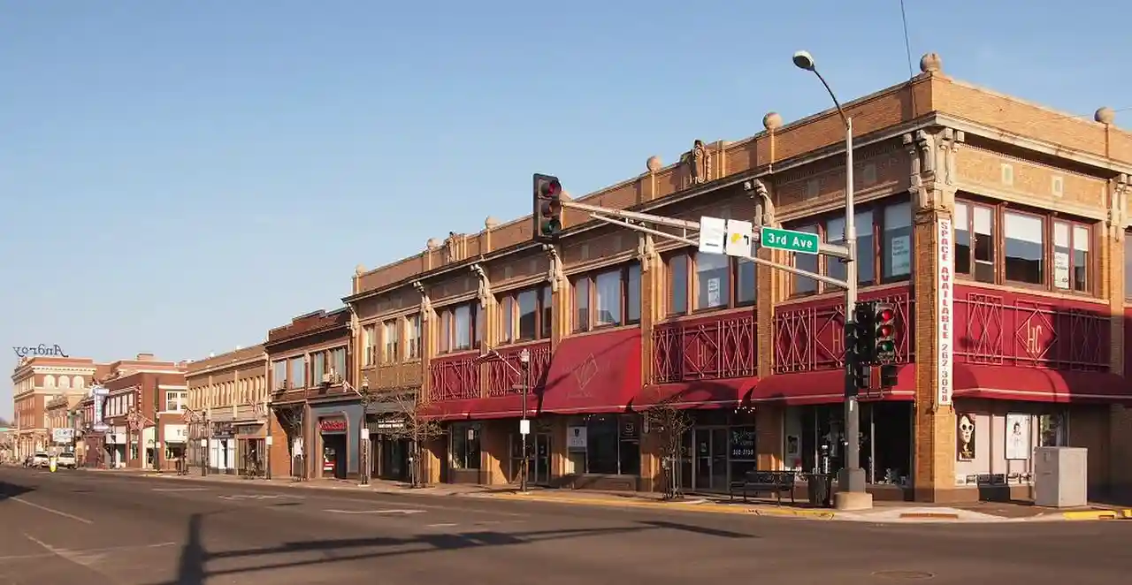 The East Howard Street Commercial Historic District is a historic business district in Hibbing, Minnesota, United States. It comprises both sides of East Howard Street along the four blocks between 1st and 5th Avenues. It was the new business district designed and built for Hibbing by the Oliver Iron Mining Company from 1920 to 1921, when the company arranged to move the city a mile south to expand the Hull–Rust–Mahoning Open Pit Iron Mine. With The district was listed on the National Register of Historic Places in 1993 for its local significance in the theme of community planning and development. It was nominated as a key portion of Hibbing that represents the efforts of the Oliver Iron Mining Company to relocate the entire town, and the economic importance of iron mining on the Mesabi Range. Read more on Wikipedia