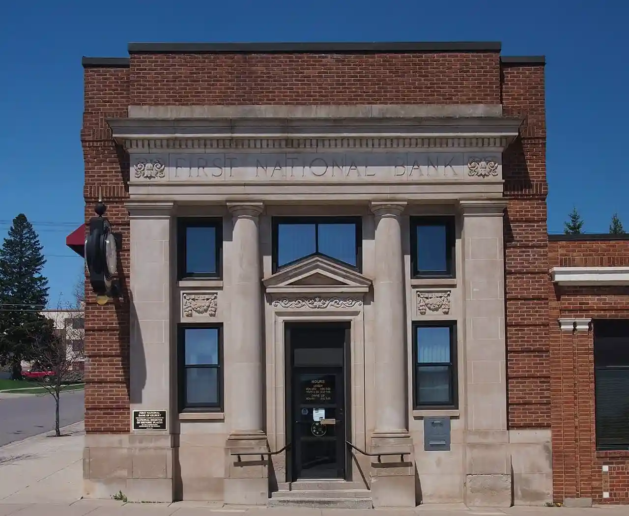 The First National Bank of Gilbert is a historic bank building in Gilbert, Minnesota, United States. It was constructed in 1920. It was listed on the National Register of Historic Places in 2012 for its local significance in the themes of architecture and commerce. It was nominated for its prominent Neoclassical architecture and for the financial support it gave to the area's agricultural sector. Located in a region better known for its mining industry, the First National Bank of Gilbert distinguished itself by providing capital to farmers and sponsoring agricultural societies. Read more on Wikipedia