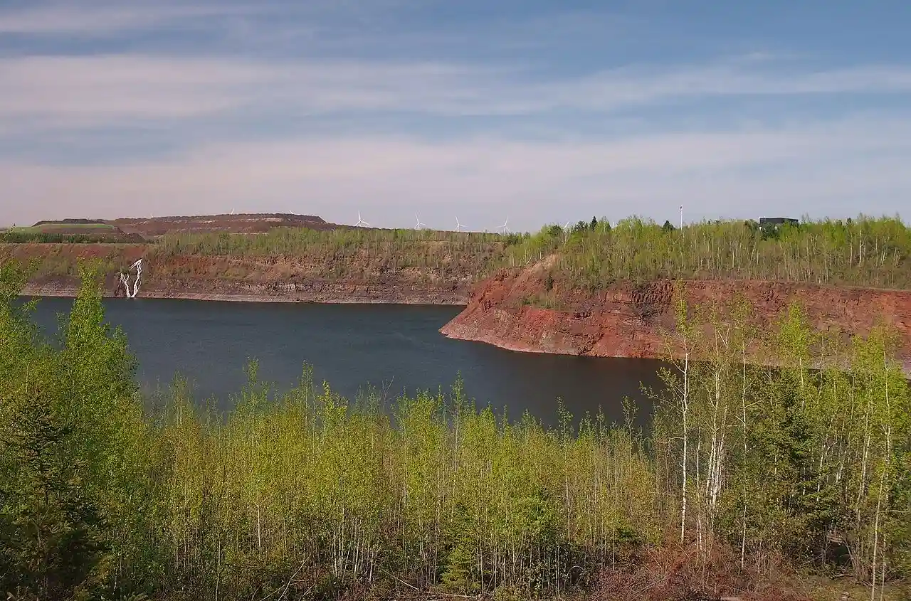 Mountain Iron Mine is a former mine in Mountain Iron, Minnesota, United States. Opened in 1892, it was the first mine on the Mesabi Range, which has proved to be the largest iron ore deposit ever discovered in the United States. Mining operations at the site ceased in 1956. The bottom of the open-pit mine has filled with water but its dimensions are readily visible. With The city maintains an overlook in Mountain Iron Locomotive Park. Read more on Wikipedia