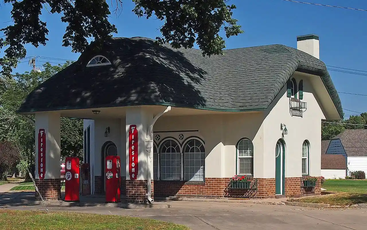 The Lundring Service Station is a historic former gas station in Canby, Minnesota, United States. It was built in 1926 in the style of an English cottage. The service station was listed on the National Register of Historic Places in 1986 for having local significance in the theme of architecture. It was nominated for being a good example of the small, period revival gas stations built in the United States in the 1920s and 30s, and a distinctive use of English Cottage Revival architecture. Read more on Wikipedia