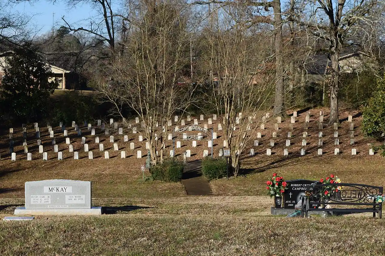 The Odd Fellows and Confederate Cemetery, at the corner of Cemetery and Commerce Streets in Grenada, Mississippi is a historic cemetery. It includes Gothic architecture, Romanesque architecture, Classical architecture. It was listed on the National Register of Historic Places in 1988, for architectural criteria. Read more on Wikipedia