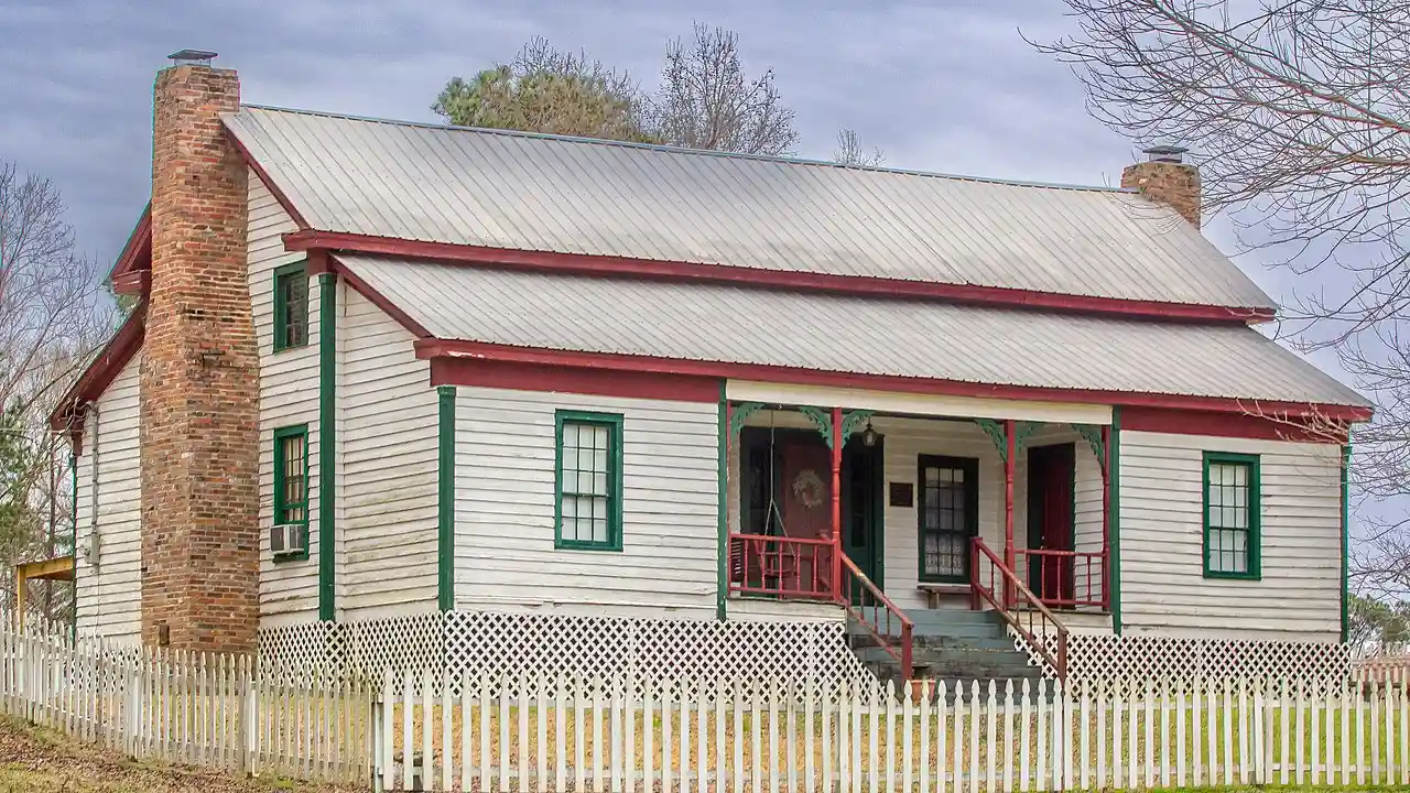 The Perkins House in Dekalb, Mississippi is a historic structure listed on the National Register of Historic Places in 1994 for its architectural significance as a mid-nineteenth century example of a vernacular middle-class farmhouse as well as the artistic significance of the ornamental painting displayed throughout the interior of the house. The Perkins House was originally built around 1870, and the artwork was added in the 1890s. The house was originally located on Murphy Hardy Rd, northwest of its junction with Mississippi Highway 493 but was moved to its current location on Townsend Road in 2012 after being purchased by new owners. Read more on Wikipedia