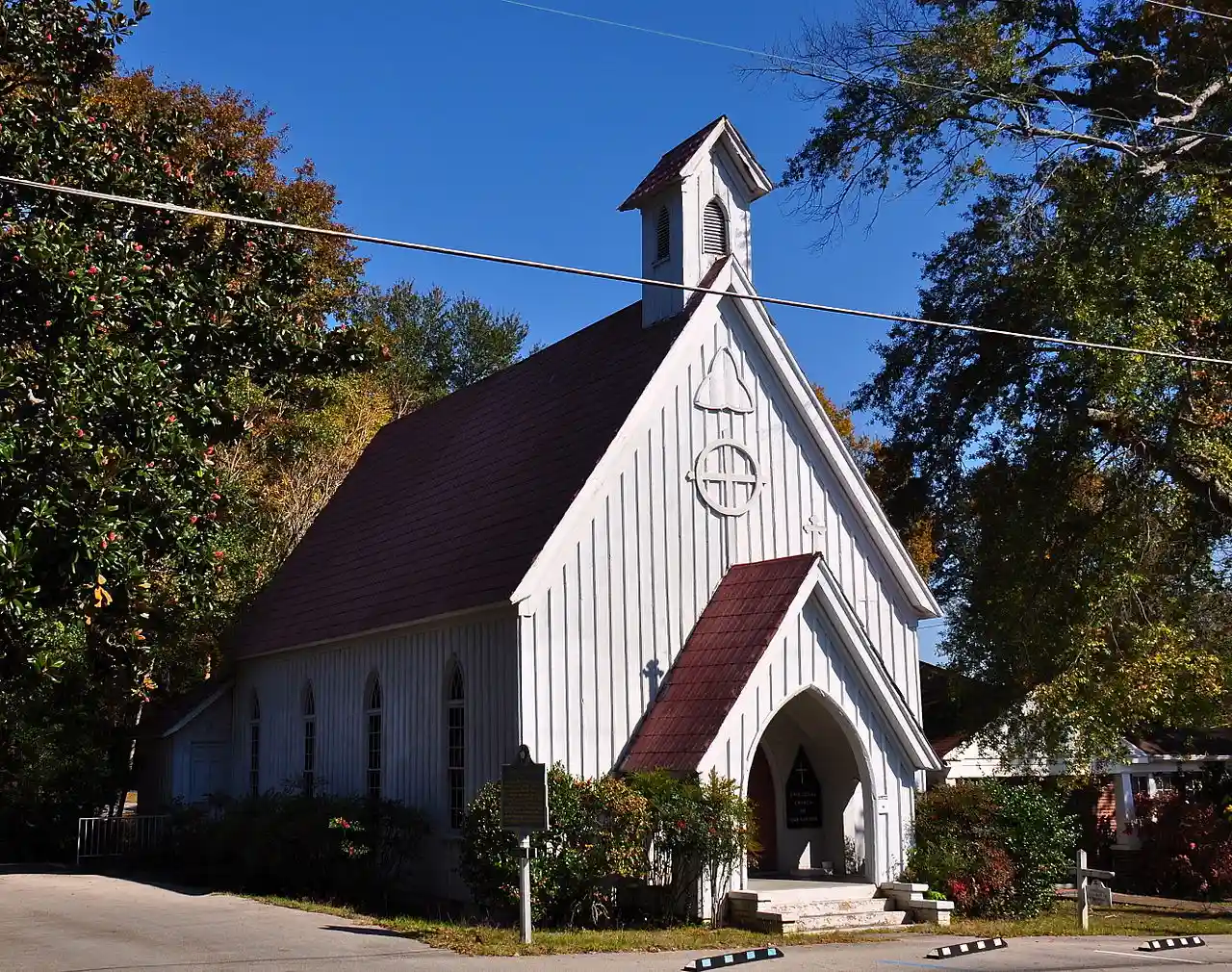 The Church of Our Saviour is an historic Carpenter Gothic style Episcopal Church located on Eastport Street between Main and Fulton streets in Iuka, Mississippi Designed by architect James B. Cook, it was built in 1873. Its board and batten siding, steep roofs and lancet windows are typical of Carpenter Gothic churches. In order to prevent its removal, local citizens bought it from the Episcopal Diocese of Mississippi in 1985. Read more on Wikipedia