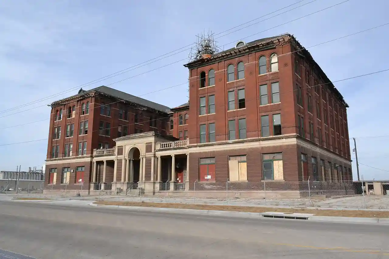 Livestock Exchange Building is a historic commercial building located at St. Joseph, Missouri. It was designed by architect Edmond Jacques Eckel (1845–1934) and built in 1898–1899. It is a four-story, red brick and stone building with Neoclassical style ornamentation. Also on the property are two contributing multi-car garages and a loading platform. The building was once considered the crown jewel in the vast stockyards and packinghouses on the south side of St. Joseph. Read more on Wikipedia