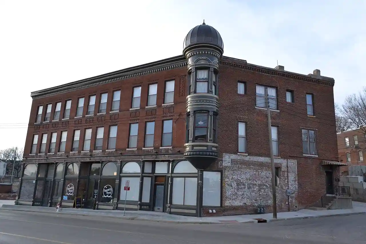 Ryan Block is a historic commercial building located at St. Joseph, Missouri. It was built in 1889, and is a three-story, trapezoidal shaped, Italianate style brick building. It consists of three units in a row with common walls and cast iron storefronts. It features a dentillated metal cornice and a two-story oriel window sheathed in decorative metal. Read more on Wikipedia