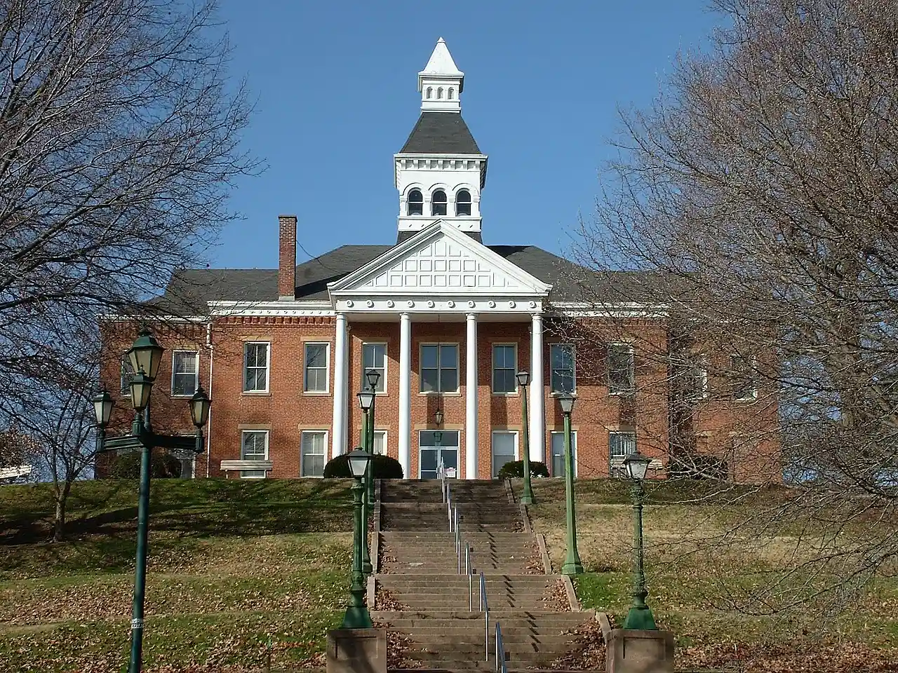 Cape Girardeau Court of Common Pleas is a historic courthouse located at Cape Girardeau, Missouri. It was built in 1854 in the Federal style, and is a two-story, red brick building on a limestone foundation with a partial basement, hipped roof and cupola. Additions made in 1888, added Classical Revival style design elements including a pedimented portico. An addition was constructed in 1959. Also on the property are the contributing concrete stairway (1900), a fountain (1911), a bandstand (1934) and a sundial (1938). Read more on Wikipedia