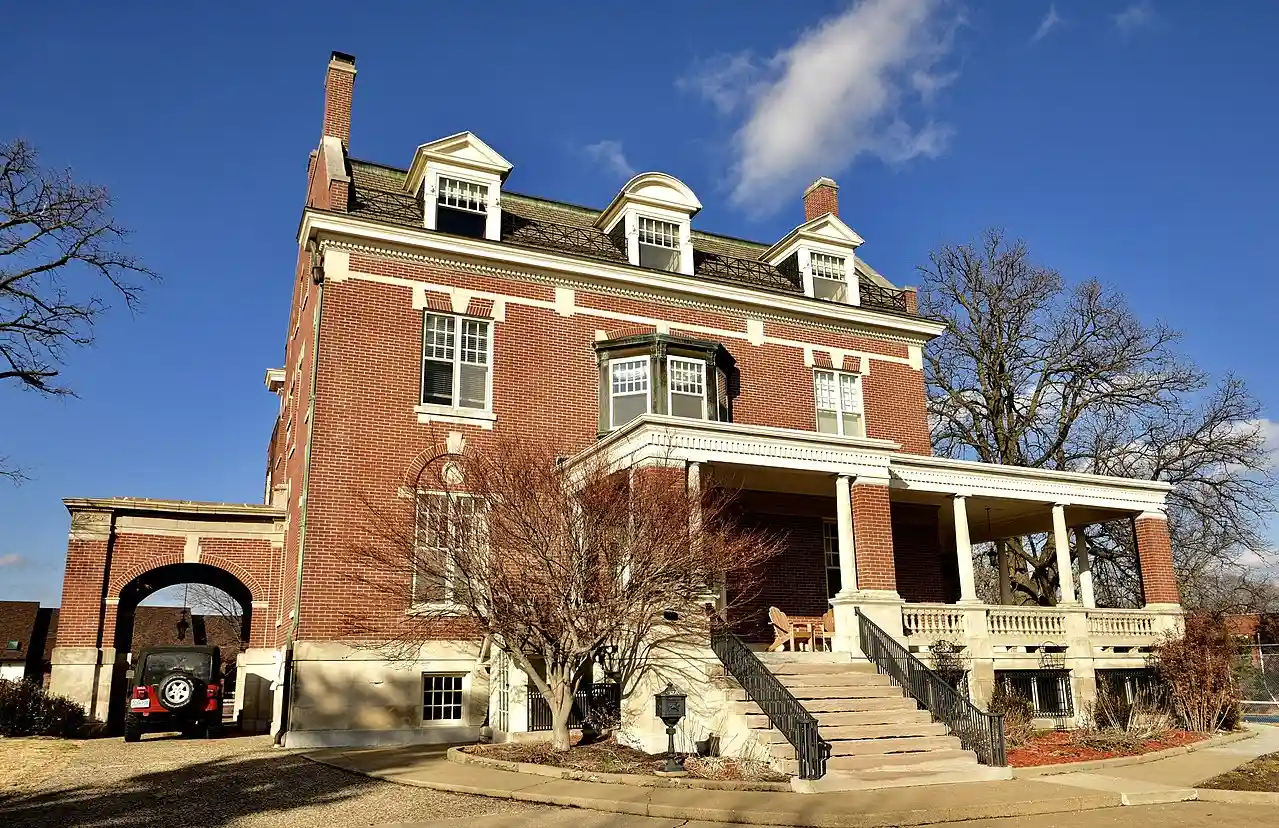 Villa Panorama is a historic home located in Jefferson City, Cole County, Missouri. It was built in 1907, and is a -story, Colonial Revival style brick dwelling. It sits on a rough ashlar limestone basement and has a slate gambrel roof with dormers. It features an entrance portico and porte cochere. Also on the property are the contributing brick carriage house, pump house, and landscaped property with stone grotto. (includes 19 photos from 1984) Read more on Wikipedia