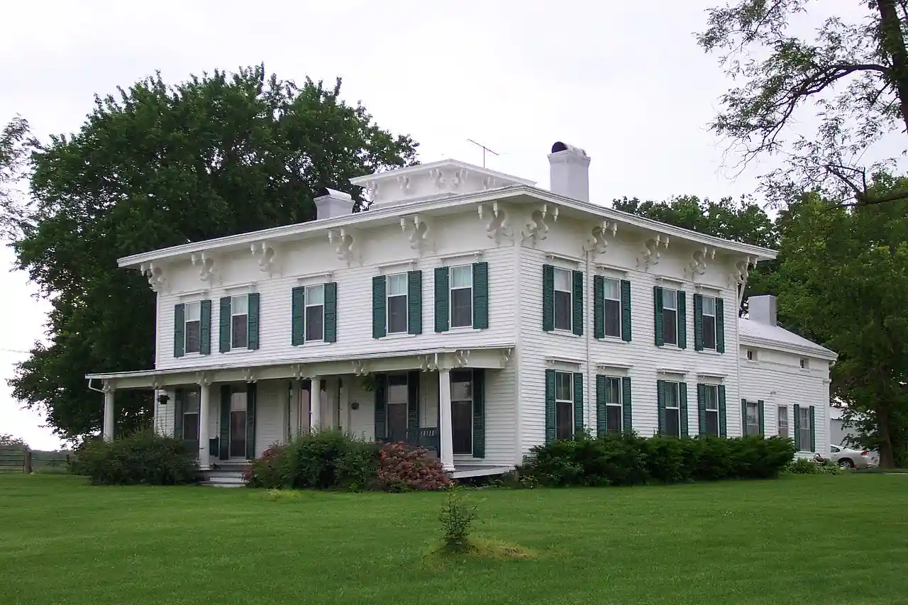 Prairie View, also known as the Betteridge Property and Crestmead, is a historic plantation house located at Pleasant Green, Cooper County, Missouri. It was built in 1859 by John Taylor, and is a two-story, Italianate/Greek Revival style frame dwelling with a -story rear ell. It features a single story porch with fluted Doric order columns and paired brackets in the eaves. It is notable for its contribution to local commerce and agriculture of the region. The plantation utilized slave labor from the time of its completion until the end of the Civil War.] (includes 9 photos from 1980) The Prairie View plantation is a private residence and the current owners are Robert and Ann Betteridge. The Betteridge family have owned Prairie View since 1903 when Robert Betteridge's grandfather William Betteridge bought the house and legally changed the name from Prairie View to Crestmead. Read more on Wikipedia