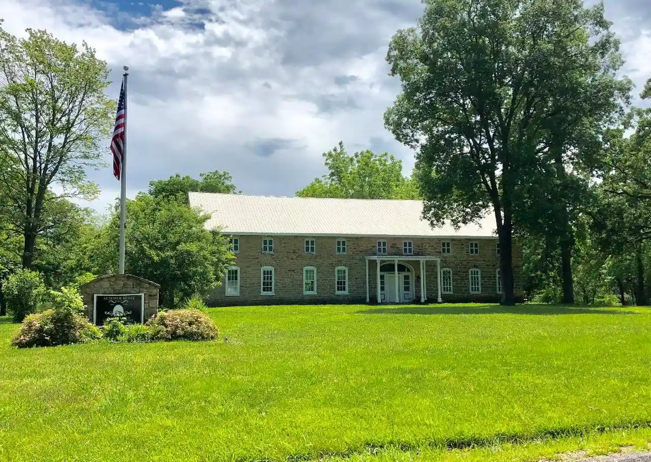 Maj. Gen. William S. Harney Summer Home, also known as the Harney Mansion, is a historic home located at Sullivan, Crawford County, Missouri. It was built in 1856, and is a 1 3/4-story, eclectic dwelling constructed of native brown sandstone. The house has a rear wing added between 1869 and 1872. It was the summer home of William S. Harney, who purchased it in 1869. Read more on Wikipedia