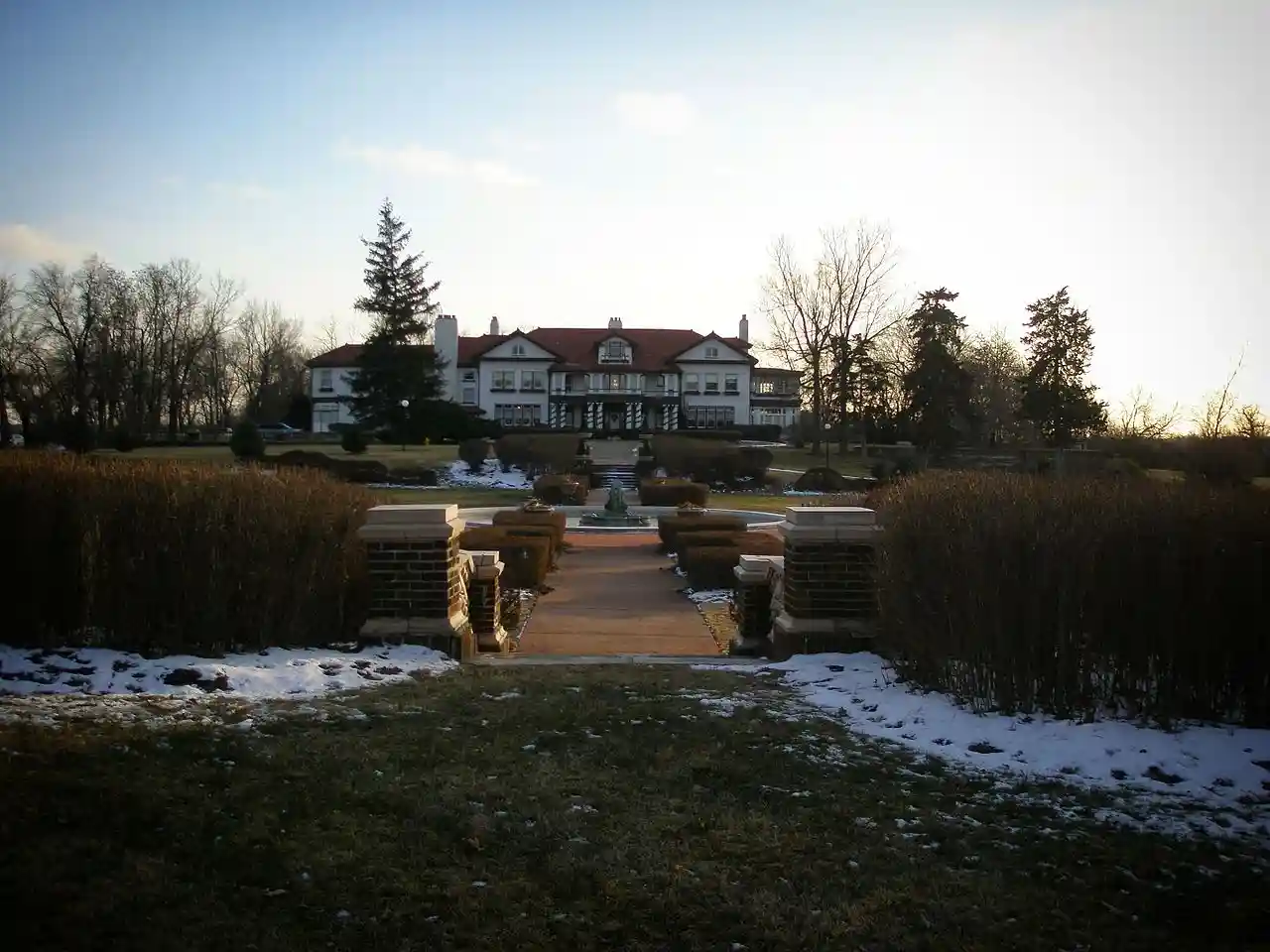 Longview Farm in Lee's Summit, Missouri, United States was built by Robert A. Long. In planning the farm Long turned to Henry F. Hoit of Hoit, Price and Barnes, as he had designed Corinthian Hall and the R.A. Long Building. George Kessler was chosen as the landscape architect. The farm and over 50 other structures were built on 1,780 acres. Construction started in 1913 and completed in 1914 taking just 18 months to complete. The result is what came to be known as The World's Most Beautiful Farm. -Worlds most beautiful farm remembered Construction workers included 50 Belgian craftsmen and 200 Sicilian stonemasons, among 2,000 other workers, to build the Longview Mansion and farm. Read more on Wikipedia