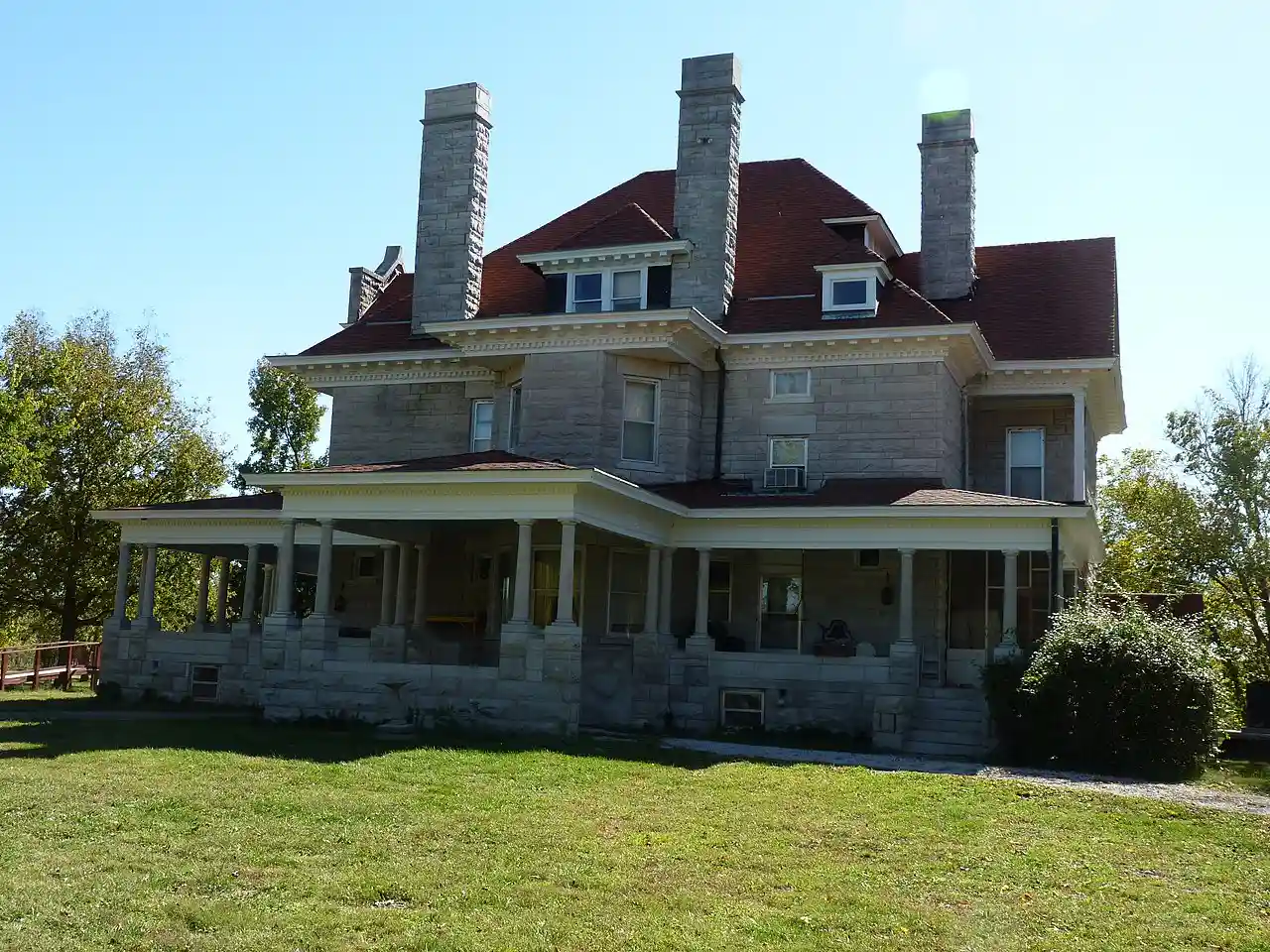 Phelps Country Estate is a historic estate developed between about 1900 and 1904 and located near Carthage, Jasper County, Missouri. The main house is a large two-story, eclectic Late Victorian style dwelling constructed of locally quarried Carthage marble. It has a red tile hipped roof and features a wraparound verandah. Also on the property are the contributing well house, caretaker's cottage, carriage house, workshop, silo, and large barn. (includes 5 photographs from 1982) Read more on Wikipedia
