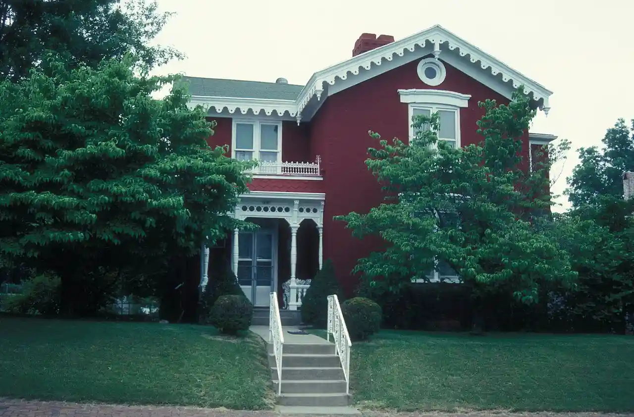 Waddell House, also known as Pastorium of the First Baptist Church or Van Amburg House, is a historic home located at Lexington, Lafayette County, Missouri. It was built about 1840, and is a two-story, red brick dwelling on a partial basement. It features decorative elements such as clustered chimney pots, scalloped vergeboards with pendants, and a spindled stickwork Late Victorian porch with mansard roof. William Bradford Waddell acquired the house in trade for stock in the local Baptist Female College in 1869. (includes 9 photographs from 1979) Read more on Wikipedia