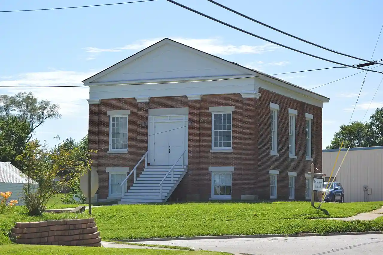 First Presbyterian Church is a historic Presbyterian church located at La Grange, Lewis County, Missouri. It was built in 1848, and is a one-story, temple front, Greek Revival style, red brick building on a raised basement. It has a gabled roof with an unadorned wood raked cornice and a pediment on the symmetrical façade. (includes 5 photographs from 2011) Read more on Wikipedia