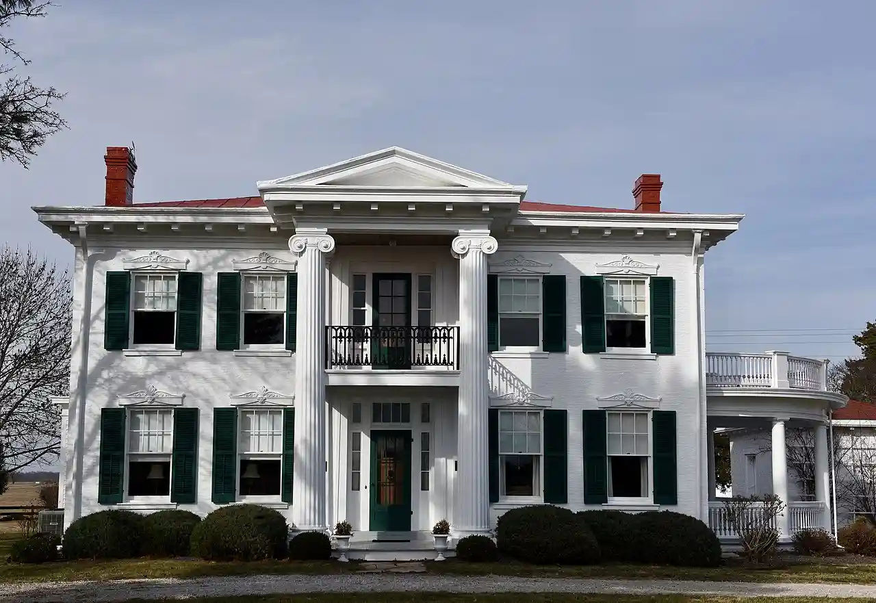 Culbertson–Head Farmstead is a historic home, farm, and national historic district located near Palmyra, Marion County, Missouri. The house was built about 1854–1855, and is a two-story, L-shaped, Greek Revival style brick dwelling. It features a two-story front portico. Also on the property are the contributing smokehouse / ice house (pre-1915); shop (c. 1927); large Jamesway, gambrel roof barn (1927); gabled roofed, wood granary (corn crib) (ca. 1927); and transverse crib barn (1880s). (includes 27 photographs from 2007) Read more on Wikipedia