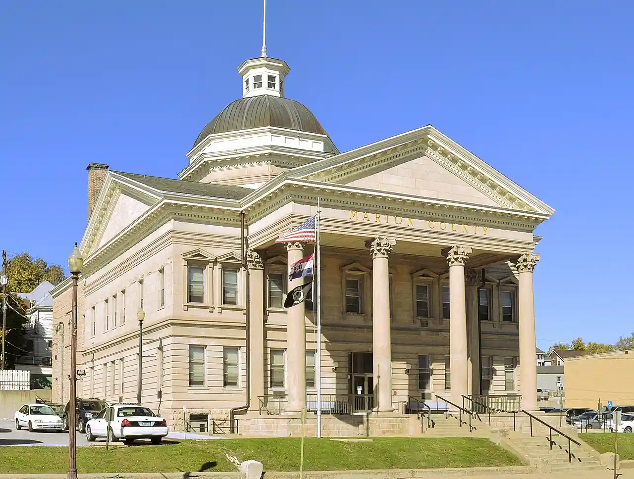 Marion County Courthouse is a historic courthouse located at Hannibal, Marion County, Missouri. It was built in 1901, and is a two-story, rectangular, Classical Revival style limestone building. It features an octagonal drum dome topped by an octagonal lantern towering above the two-story portico with four Corinthian order columns. (includes 7 photographs from 2002) Read more on Wikipedia