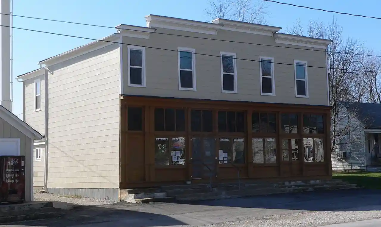 Farmers Mercantile Co. Building is a historic commercial building located at High Hill, Montgomery County, Missouri. It was built in 1904, and is two-story, frame building. It rests on a stone foundation and has a low-pitched gable roof behind a stepped parapet. The building historically served as a social and commercial center for the community. (includes 15 photographs from 2004) Read more on Wikipedia