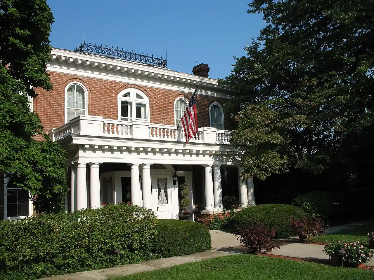 Thomas Gaunt House, also known as The President's Home, is a historic home located at Maryville, Nodaway County, Missouri. It was built about 1865, and is a two-story, modified "L"-plan, brick dwelling in the late Greek Revival style. It has a shallow pitched hipped roof with a broad cornice. It features Neoclassical porches supported by grouped Tuscan order columns. It is owned by Northwest Missouri State University, and is occupied by the president of the university. (includes 10 photographs from 1978) Read more on Wikipedia