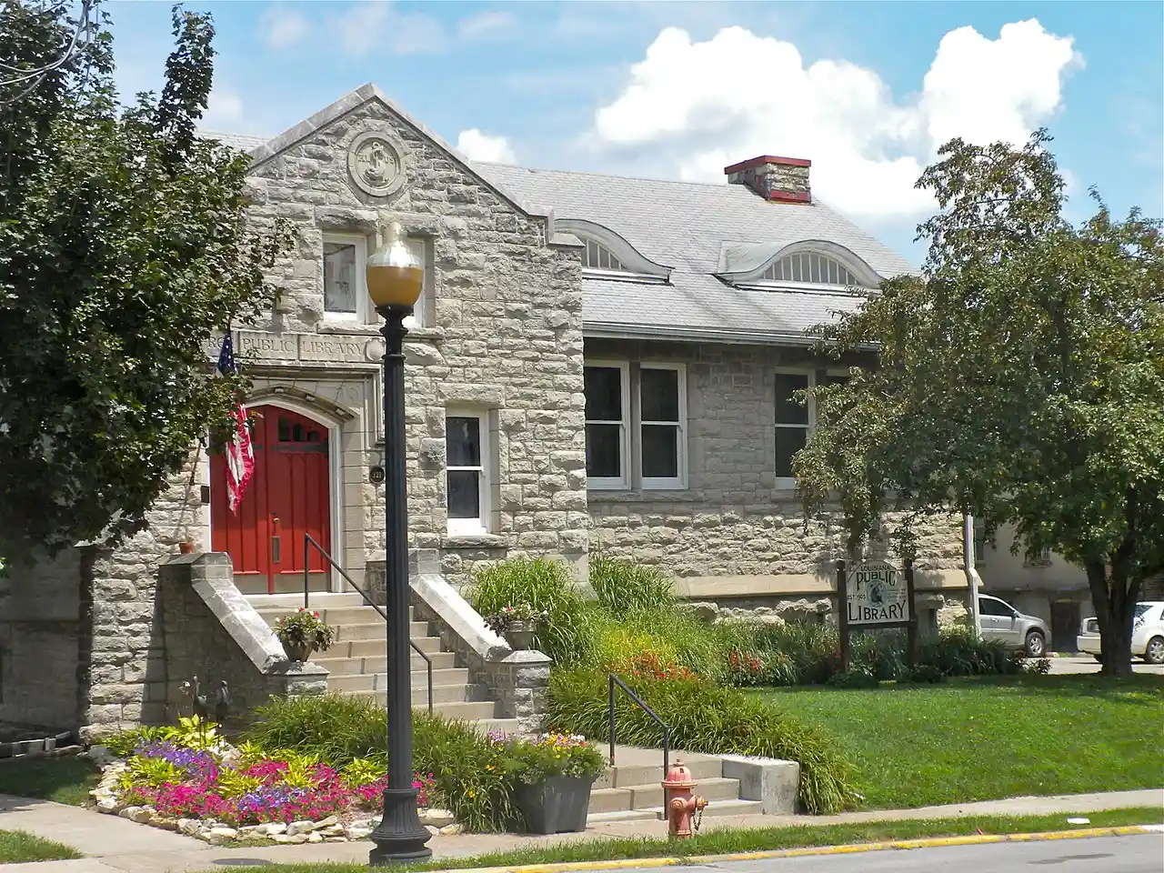 Louisiana Public Library is a historic Carnegie library building located at Louisiana, Pike County, Missouri. It was designed by the architectural firm Mauran, Russell & Garden and built in 1905. It is a one-story, Late Gothic Revival style rock-faced, cut limestone building on a partially exposed basement. It measures approximately 50 feet by 40 feet and features a front arched doorway with batten doors, eyebrow windows, and stepped parapet. It was constructed with a $10,000 grant from the Carnegie Foundation. (includes 10 photographs from 1995) Read more on Wikipedia