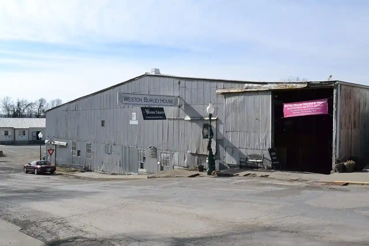 Missouri District Warehouse, also known as the Weston Tobacco Warehouse and Weston Burley House No. 1, is a historic warehouse located at Weston, Platte County, Missouri. It was built in 1937, and is a sprawling, two-story, rectangular, steel-frame building sheathed with corrugated metal. It measures 125 feet by 300 feet. It was built as a loose-leaf tobacco auction warehouse and curing barn. (includes 16 photographs from 2009) Read more on Wikipedia