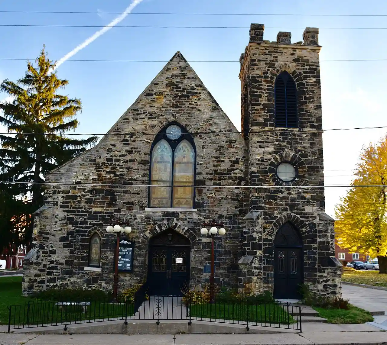 First Presbyterian Church, also known as Rock Church, is a historic Presbyterian church located at 212 E. North Street in Marshall, Saline County, Missouri, United States. It was built between 1871 and 1873, and is a one-story Gothic Revival style yellow sandstone building. It features pointed arch windows and a corner bell tower. (includes 4 photographs) Read more on Wikipedia