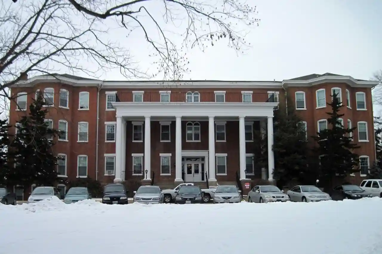 Lindenwood Hall, also known as Sibley Hall, is a historic building located on the campus of Lindenwood University at St. Charles, St. Charles County, Missouri. The original section was built in 1857, with wings added in 1881 and 1887. The original section is a three-story plus full basement, rectangular, red brick building measuring 73 feet wide by 48 feet deep. It has Classical Revival and Italianate style detailing including a two-story front portico, paired arched windows, and a low hipped roof. The three-story brick wings resulted in a U-shaped plan and feature three-story, three sided bay windows. (includes 8 photographs from 1978) Read more on Wikipedia