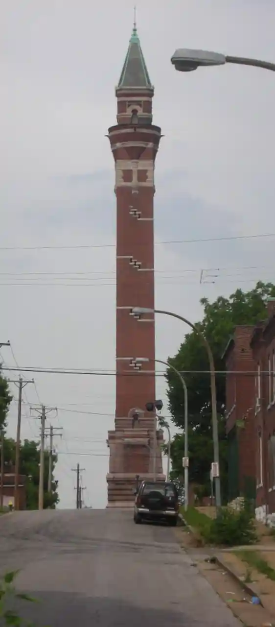 Bissell Street Water Tower (also known as the "New Red" tower) is a historic standpipe water tower located at the junction of Bissell Street and Blair Avenue in St. Louis, Missouri. The tower was completed in 1886 and was in service until 1912.Bissell ("New Red") Water Tower It is one of three remaining historic standpipes in Saint Louis, along with the Grand Avenue Water Tower and the Compton Hill Water Tower. Read more on Wikipedia