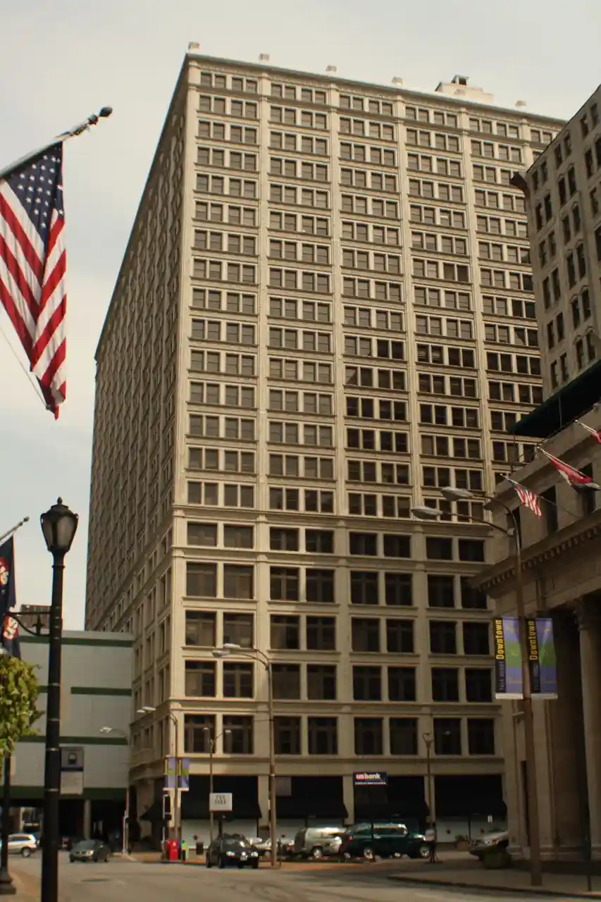 The Railway Exchange Building is an , 21-story high-rise office building in St. Louis, Missouri. The 1914 steel-frame building is in the Chicago school architectural style, and was designed by architect Mauran, Russell & Crowell. The building was the city's tallest when it opened, and remains the second-largest building in downtown St. Louis by interior area, with almost of space. Read more on Wikipedia